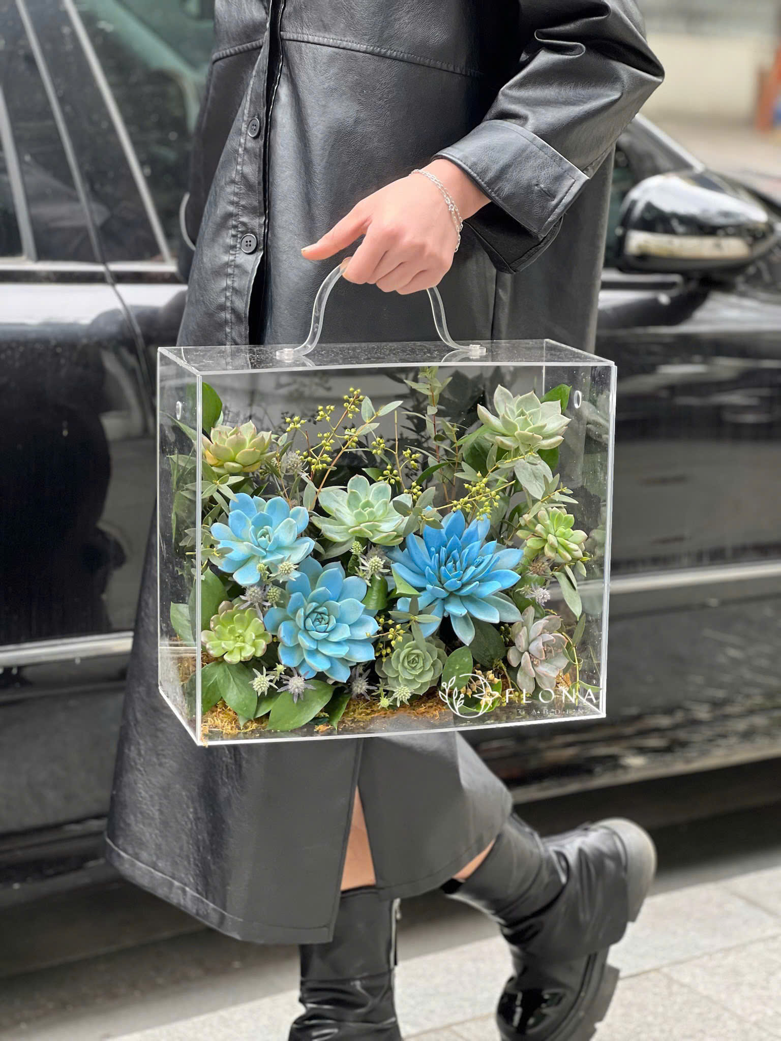 Một khu vườn xanh biếc mang sắc lam dịu mát của Echeveria Blue Atoll (sen đá xanh lam) và Succulent (sen đá mỡ gà) – như làn gió từ đại dương len vào phố thị. “Azure Garden” là món quà dành cho những tâm hồn yêu sự tĩnh tại, sang trọng và khác biệt – nơi sắc xanh chạm đến cảm xúc an yên.