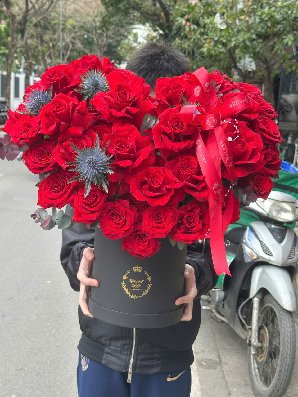 Tựa trái tim Paris giữa mùa yêu, Cœur de Rouge kết hợp sắc đỏ rực rỡ của Rose (hoa hồng) cùng ánh xanh thanh mát của Eryngium (thảo đinh lăng xanh). Hộp hoa là biểu tượng của tình yêu mãnh liệt, kiêu hãnh và vĩnh cửu.