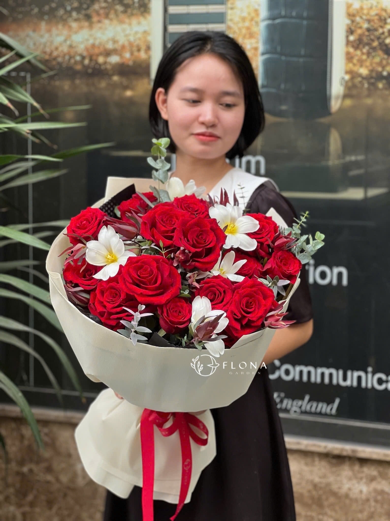 Freesia Serenade là bản tình ca được viết nên từ những đóa Scarlet Roses (Hồng đỏ tươi) và Freesia (Lan dạ hương) trắng tinh khôi. Sự hòa quyện giữa sắc đỏ nồng nàn và trắng thuần khiết mang đến cảm giác như một bản nhạc giao hòa giữa đam mê và dịu dàng – mãnh liệt mà vẫn trong trẻo. Mỗi cánh hoa là một giai điệu của trái tim, vang lên để kể về một tình yêu vừa cháy bỏng vừa an yên.