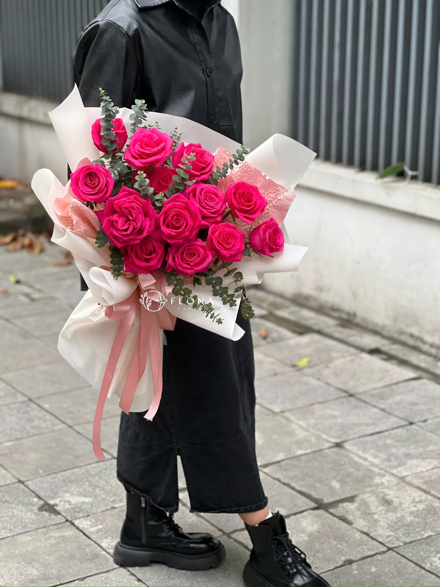 Fuchsia Muse – nàng thơ trong sắc hồng rực rỡ, nơi những đóa Fuchsia Rose (hoa hồng hồng đậm) khoe sắc kiêu sa giữa làn lá Eucalyptus (bạch đàn) xanh mát. Bó hoa mang vẻ đẹp hiện đại, tự tin và đầy sức sống – như lời khẳng định dịu dàng của người phụ nữ biết yêu thương và tỏa sáng.