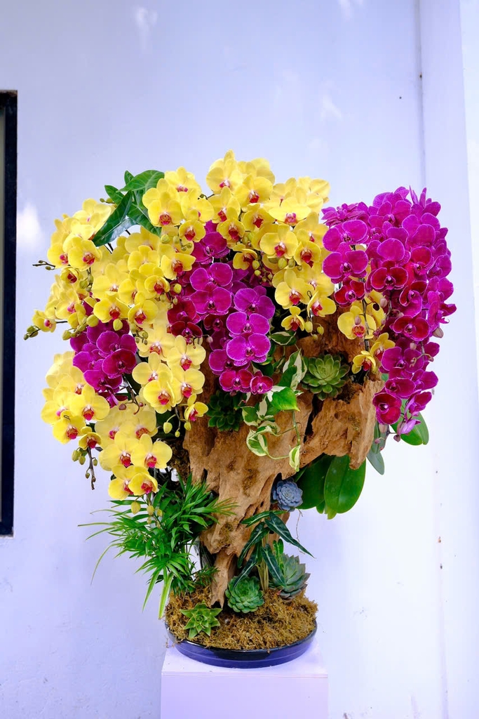 Lumière Royale – khúc hòa điệu của sắc vàng rực rỡ và tím kiêu sa, nơi Phalaenopsis Orchid khoe dáng như những vầng hào quang tỏa sáng giữa không gian sang trọng.