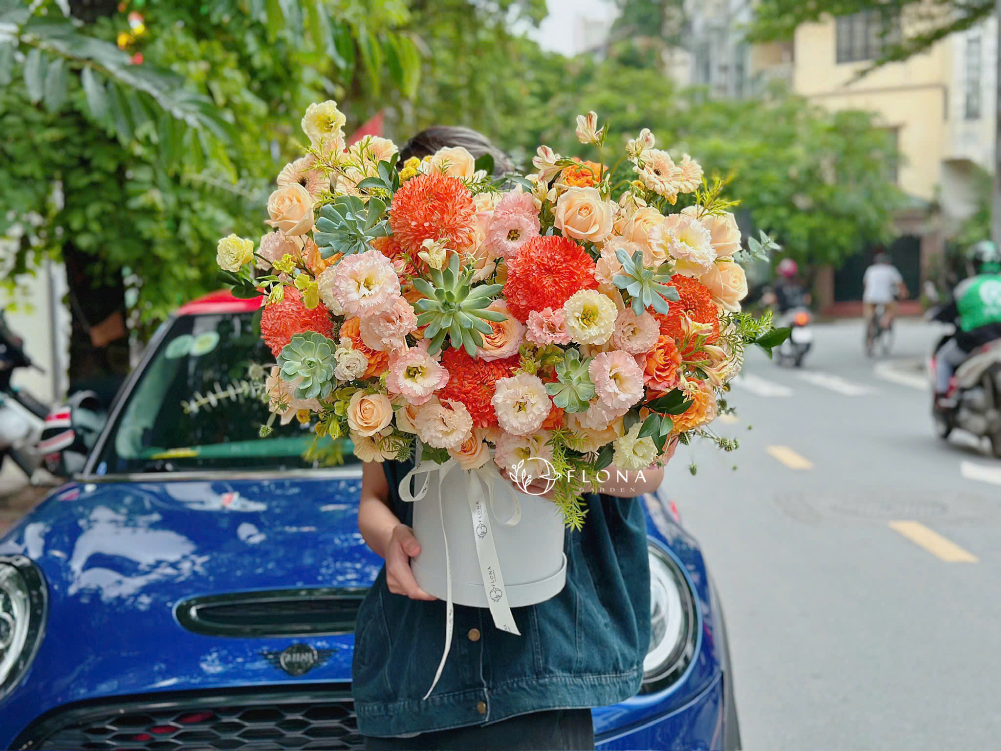 Như ánh nắng đầu ngày khẽ chạm lên cánh hoa, Matin d’Été mang sắc cam đào của Lisianthus (cát tường) và nét tươi sáng từ Chrysanthemum (cúc mẫu đơn). Hộp hoa là lời chào dịu dàng của mùa hạ – rực rỡ, mát lành và đầy sức sống.