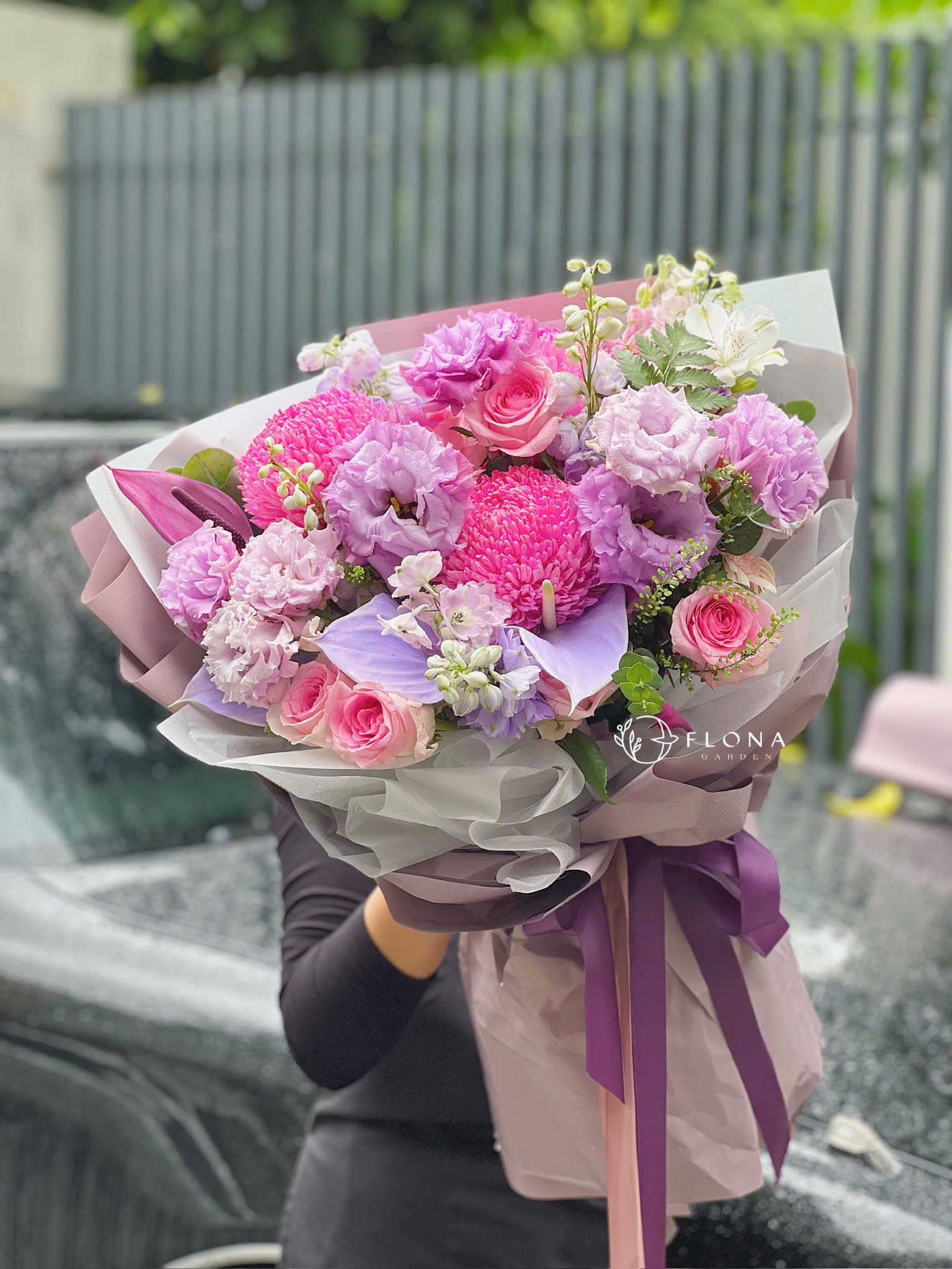 "Mauve Symphony" là bản hòa ca của các sắc hồng và tím hòa quyện giữa Rose (hoa hồng), Carnation (cẩm chướng) và Hydrangea (cẩm tú cầu).
