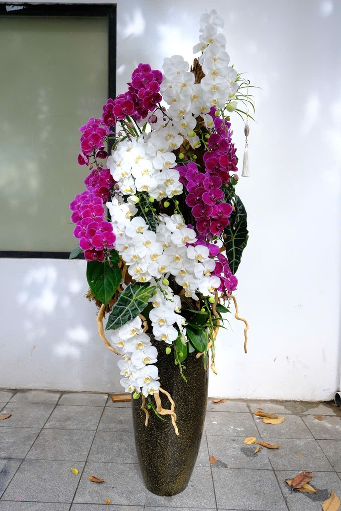 Moonlight Sonata – sự kết hợp tinh tế giữa sắc trắng thuần khiết và tím sang trọng của Phalaenopsis Orchid. Từng cánh hoa thả nhẹ như giai điệu trong bản nhạc đêm, mang đến cảm giác bình yên và lãng mạn.