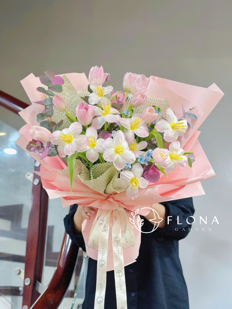 Rạng rỡ mà dịu dàng, Morning Tango là khúc nhạc mở đầu ngày mới đầy hứng khởi. Sự kết hợp hài hòa của Pink Tulips (Hoa tulip hồng) và White Freesia (Hoa lan chuông trắng) mang đến cảm giác tinh khôi, nhẹ bẫng như ánh nắng sớm mai. Một bó hoa dành cho những tâm hồn yêu sự tươi mới, dịu dàng và trong sáng – như bản giao hưởng của bình minh nơi khu vườn Flona.