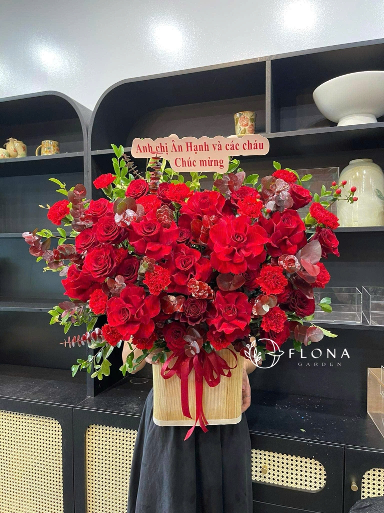 Giỏ hoa tinh khôi như khúc nhạc trong veo buổi sớm, hòa sắc Rose (hoa hồng) vàng nhạt, Chrysanthemum (cúc mẫu đơn) xanh ngọc và Orchid (hoa lan) trắng thuần khiết. Mỗi cánh hoa nhẹ như hơi thở gió xuân, mang theo cảm giác an yên và tươi mới của khu vườn tĩnh lặng.