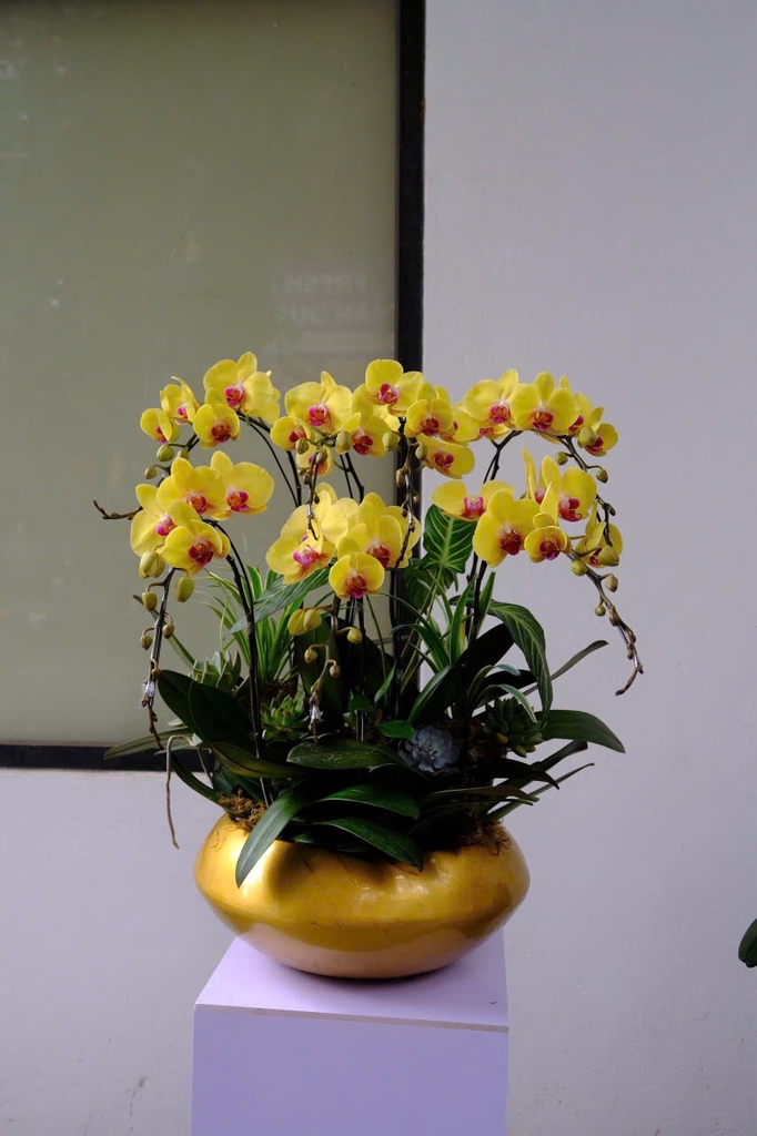 Royal Elegance tỏa sáng với vẻ đẹp kiêu kỳ của Phalaenopsis Orchid (lan hồ điệp) tím ruby – sắc màu của quyền lực, của thành công và sự tinh tế. Những cánh hoa cong mềm như nhung, hòa cùng mảng xanh duyên dáng tạo nên bố cục trang nhã mà vẫn tràn đầy năng lượng. Mỗi nhánh hoa là một tuyên ngôn thanh lịch, dành cho người dẫn đầu biết tận hưởng vẻ đẹp của sự sang trọng và tự tin.