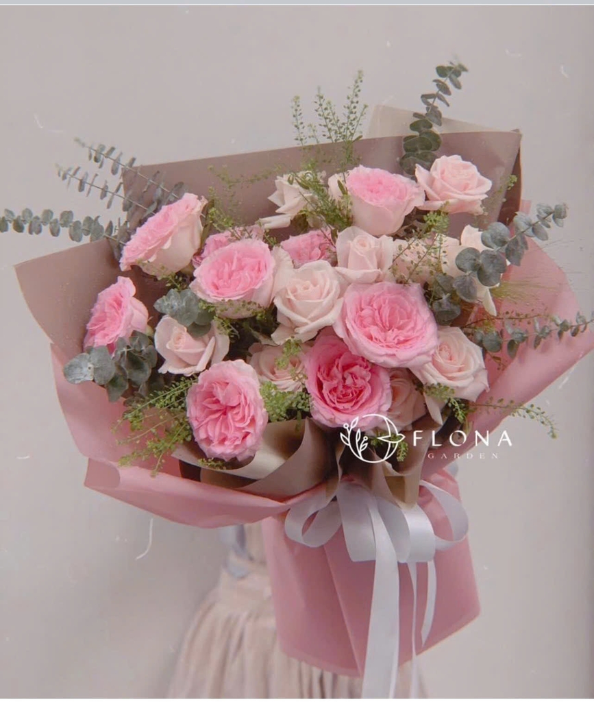Tựa như một dòng chảy hồng trong khu vườn mùa xuân, Sweet River kết hợp những Pink Garden Roses (Hoa hồng vườn hồng phấn) cùng Eucalyptus (Lá khuynh diệp) xanh bạc. Sắc hồng dịu dàng xen lẫn chút tươi tắn gợi nên cảm giác ngọt ngào, lãng mạn và đầy mơ mộng – món quà dành ch