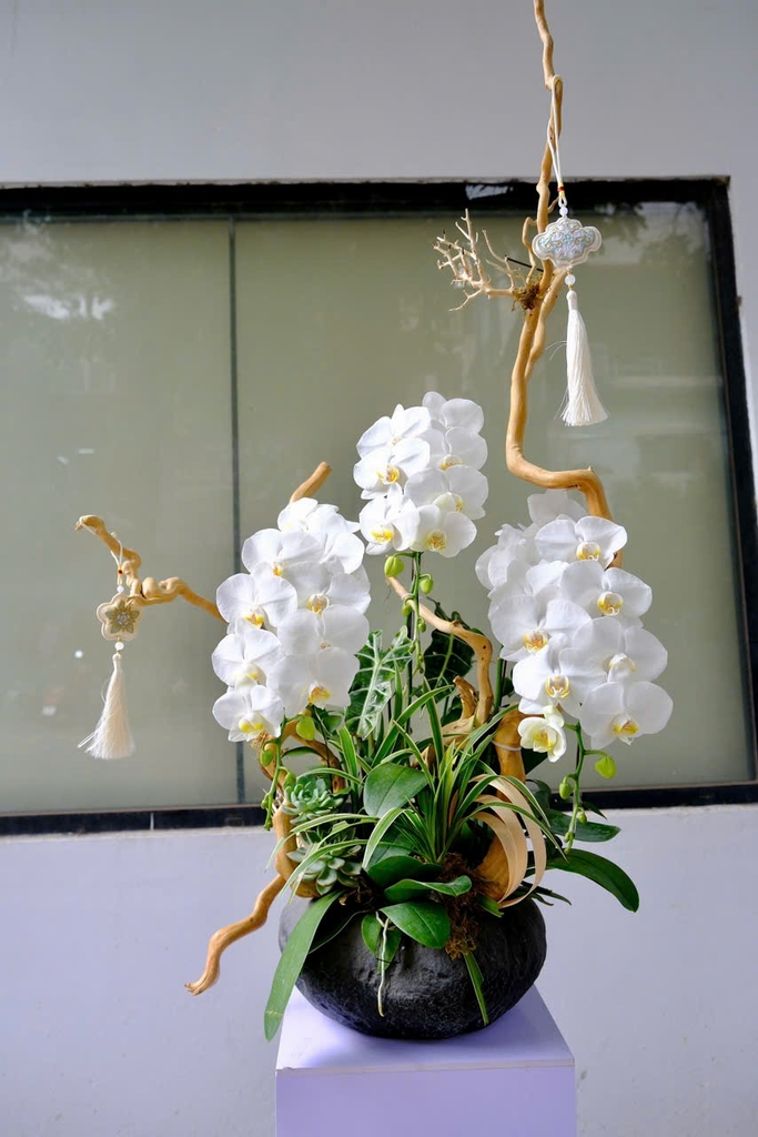 Điểm xuyết bằng sắc xanh của Succulent (sen đá) và những nhánh gỗ uốn lượn tinh tế, tác phẩm gợi nên cảm giác an hòa, vững chãi và thịnh vượng – món quà đẳng cấp dành tặng cho doanh nhân thành đạt, người kiến tạo những giá trị bền vững.